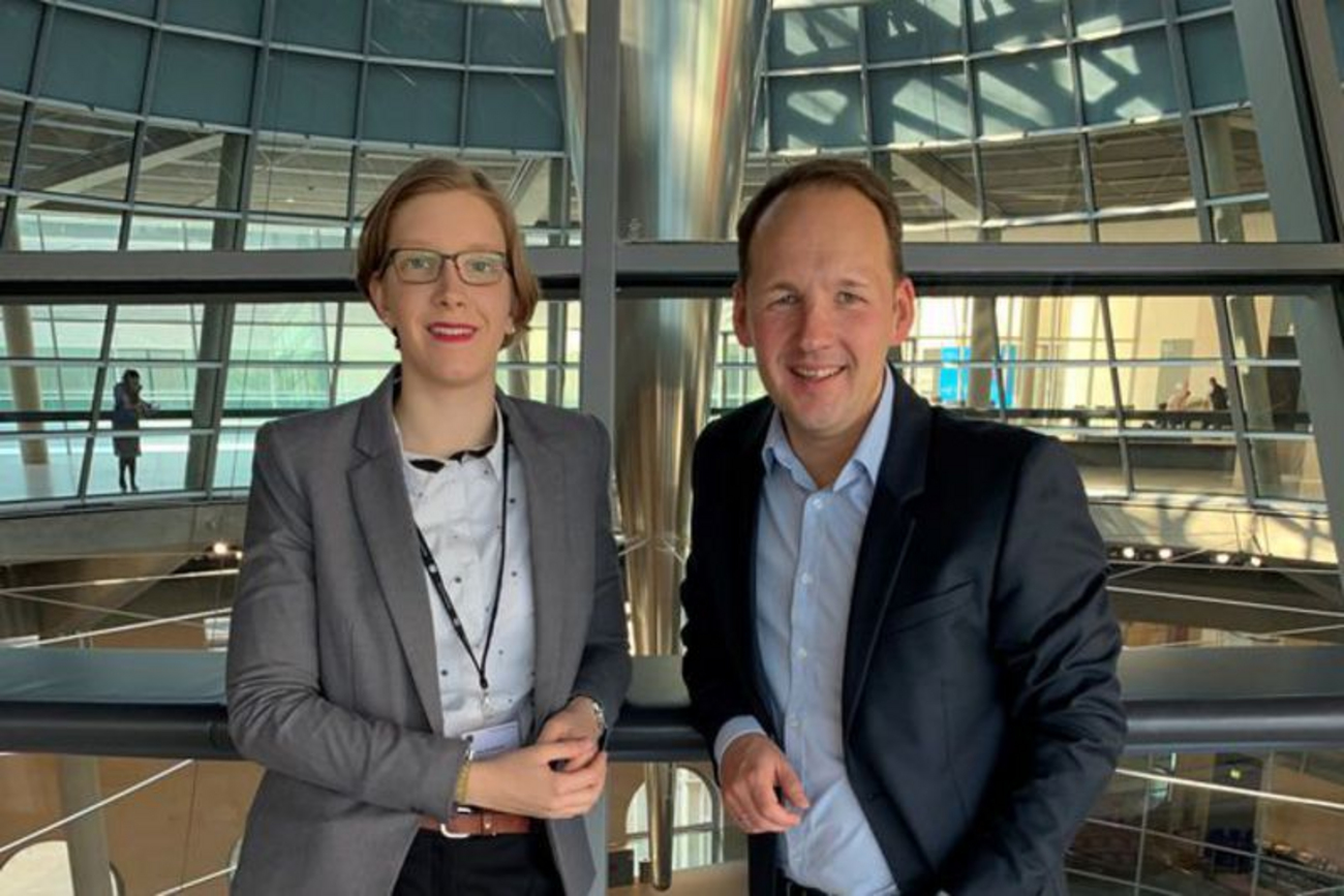 312 Jugendliche durften in diesem Jahr im Rahmen des Planspiels „Jugend und Parlament“ in die Rolle eines Abgeordneten des Deutschen Bundestages schlüpfen. Der direkt gewählte Bundestagsabgeordnete des Wahlkreises Böblingen Marc Biadacz (CDU) nominierte Alina Kroschwald aus Sindelfingen, die so den Arbeitsalltag eines Bundestagsabgeordneten kennenlernte. Sie wurde bei den zurückliegenden Kommunalwahlen das erste Mal in den Gemeinderat ihrer Heimatstadt Sindelfingen gewählt. Vom 1. bis 4. Juni konnten die Jugendlichen im Alter zwischen 17 und 20 Jahren selbst hautnah erleben, womit sich die Bundestagsabgeordneten während einer Sitzungswoche beschäftigen. Bei Debatten konnten die Jugendlichen der Fraktionen ans Pult im echten Plenarsaal treten und versuchen, Mehrheiten für ihre politischen Anliegen zu gewinnen. Marc Biadacz traf sich mehrmals mit Alina Kroschwald im Deutschen Bundestag und diskutierte mit ihr über die aktuelle politische Lage und ihre gesammelten Erfahrungen. „Das Planspiel „Jugend und Parlament“ trägt dazu bei, Jugendlichen Lust auf Politik und die Demokratie erlebbar zu machen“, so Marc Biadacz. Alina Kroschwald freute sich über die Erlebnisse im Deutschen Bundestag: „Wir durften ganz besondere Einblicke gewinnen und Politik ganz nah miterleben. Mein Highlight war das Tagen im Plenarsaal, den sonst nur die Abgeordneten betreten dürfen.“